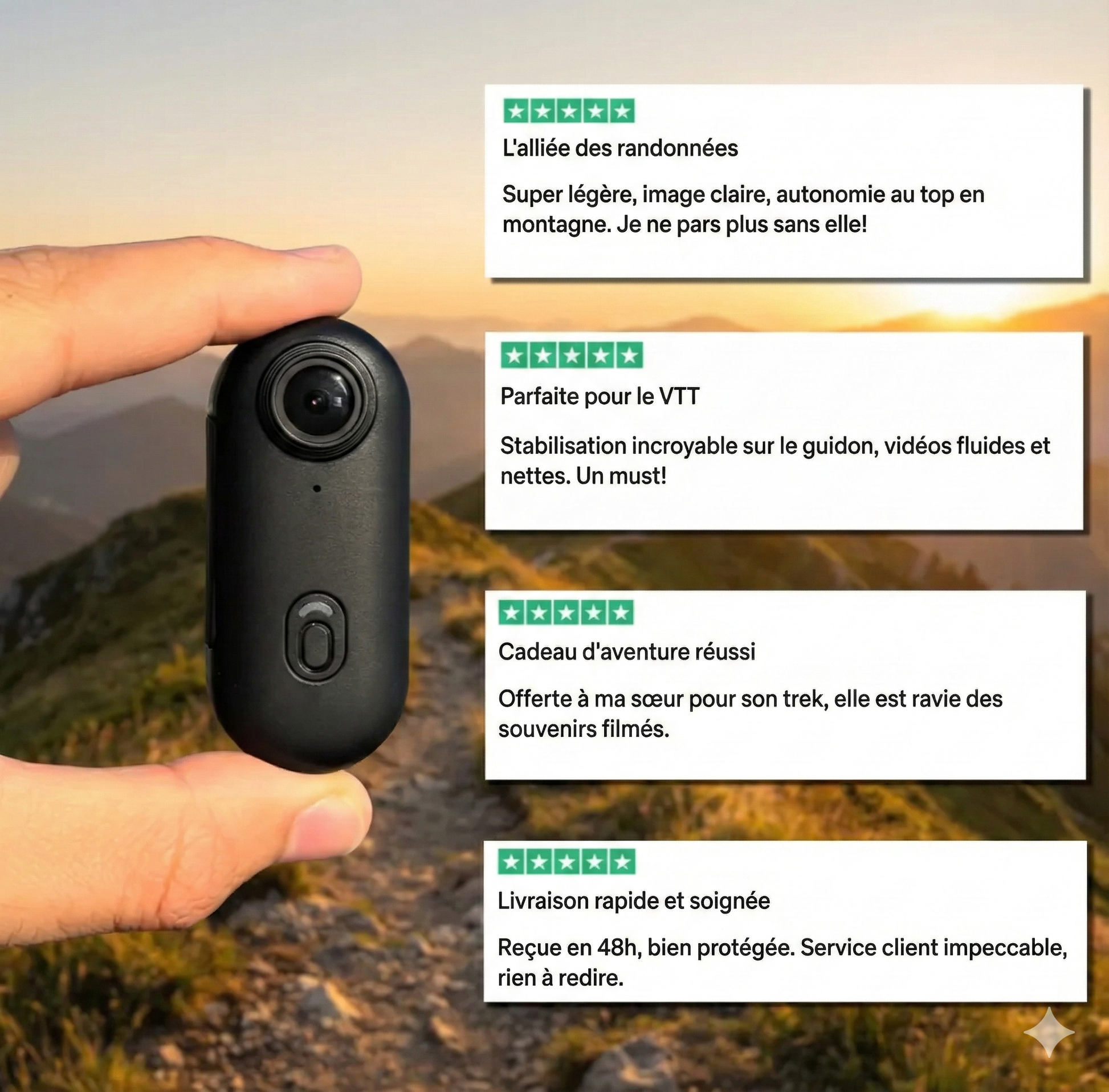 Super compacte et facile à fixer sur mon sac. La qualité vidéo 4K est top !