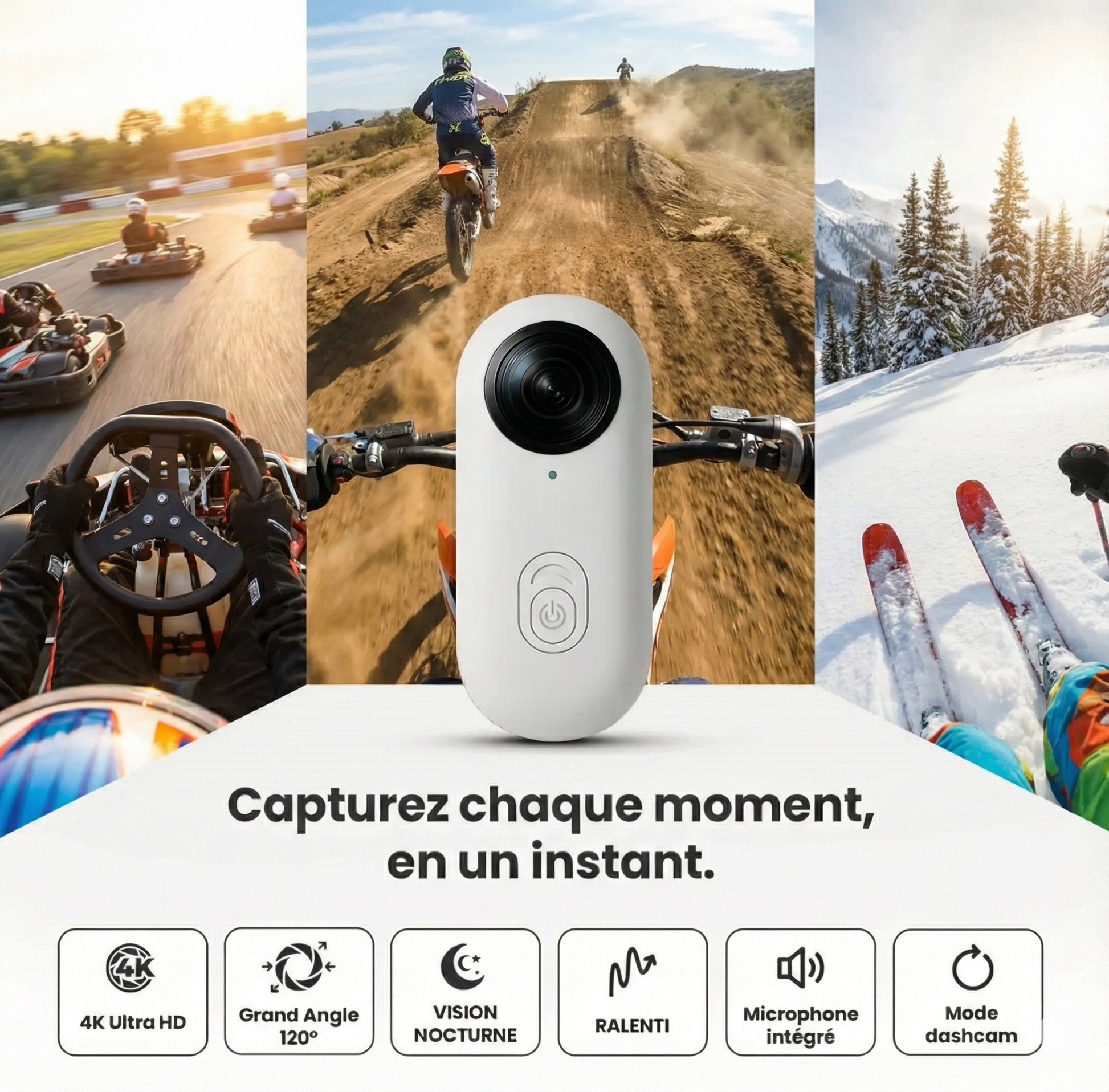 La LumiCamPro™ est une caméra ultra-compacte et légère conçue pour filmer en 4K native sans encombrement. Elle vous accompagne dans vos exploits sportifs comme dans votre quotidien.
